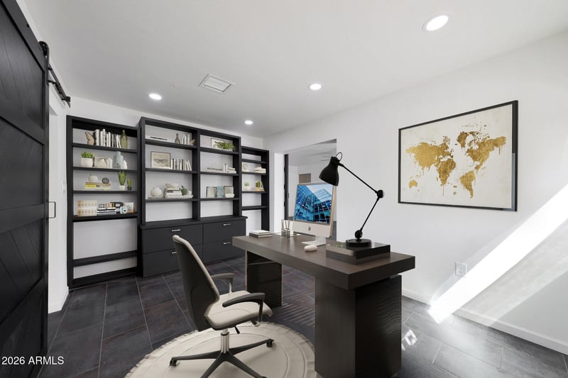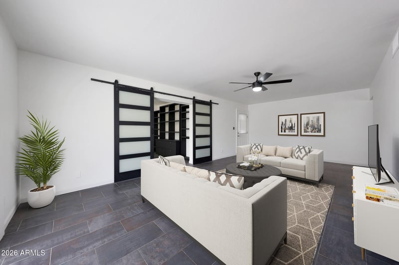 Listing details for 0 Dr, Scottsdale, AZ 85257 : Beautifully remodeled 4-bdrm, 2-bath Scottsdale, AZ home tucked away on a quiet cul-de-sac with a desirable split floor plan. Prime location minuSkySong, ASU, Sky Harbor Airport, Hiking. A versatile office/bonus rm with private entrance, adjoining a bdrm with its own exterior access, is ideal for a home business, guest suite, or multigen living. The modern kitchen features sleek cabinetry, stainless steel gas appliances, & contemporary finishes, opening to the dining area aka spacious great room--perfect for entertaining. Extensive upgrades include NEW bathrooms, custom closets and cabinetry, new flooring, tankless water heater; interior and exterior paint, & stylish interior barn doors for space efficiency. Major systems have been updated with a newer roof, HVAC, & electrical panel.