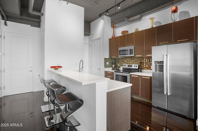 Listing details for 1 Lexington Ave #1307, Phoenix, AZ 85012 : This rare central Phoenix, high rise condo offers breathtaking views of the city skyline, Camelback Mountain and Piestewa Peak. One Lexington originally built as a commercial building was converted to condos in 2010. This sleek, modern interior boasts hardwood floors, granite countertops, stainless steel appliances, and 11'+ concrete loft-style ceilings with exposed ductwork. Updates include refinished hardwood floors, bathroom remodeled with new walk-in tile shower & quartz countertop, fresh paint throughout, and new carpet in bedroom and walk-in closet. All completed in December 2025. The north wall is floor-to-ceiling windows, filling the space with natural light. The primary suite includes a spacious walk-in closet, and on-suite bath. With the convenience of an in-unit washer/dryer. This upscale community provides many luxury amenities: full concierge service, 24/7 security, and assigned garage parking spaces with EV charging. The gym and stretching room offer state of the art equipment. Also, a resort-style heated, saltwater pool. Additional amenities include community BBQs, a fire pit, private dog park, and dog washing station. Immediate access to the Light Rail, just steps from the building. Walk to Creighton University and St. Joseph's Medical Center, or take the Light Rail to the Suns and D-Backs games, art museums, theaters, downtown dining, and Sky Harbor Airport. The One Lexington offers urban living at its finest!