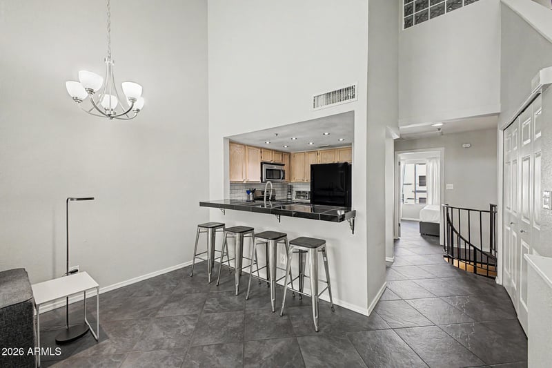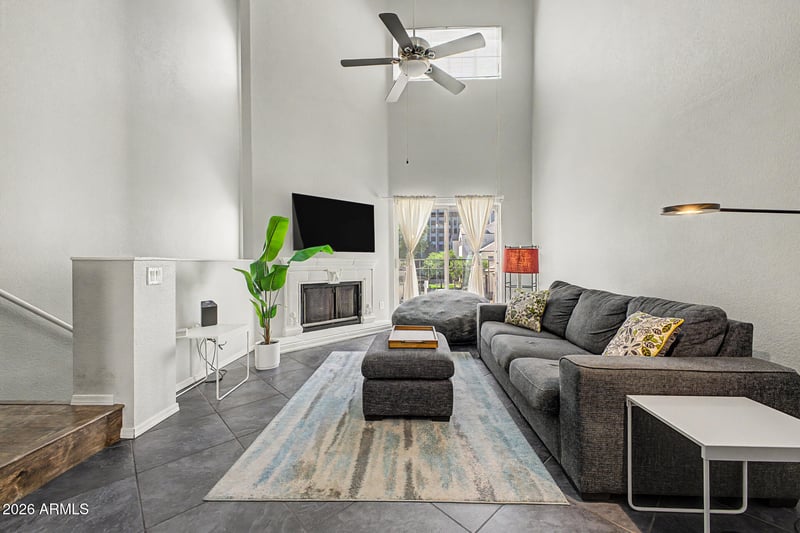 Listing details for 100 Fillmore St #216, Phoenix, AZ 85004 : Experience the best of Downtown Phoenix living in this light filled, 2BR/2BA condominium in a gated community. High vaulted ceilings create an expansive atmosphere, centered around a cozy fireplace in the main living area. A standout feature is the rarely available attached garage, providing secure, direct residence access and additional storage. The primary suite offers a retreat-like feel with continued vaulted ceilings and an en-suite bath. Community amenities include a heated pool and spa. Located within a short distance to Roosevelt Row, close to ASU Downtown, Chase Field, Suns Arena, and Light Rail access, this property presents a strong opportunity for both owner occupants and investors seeking long-term value in an established downtown setting.
