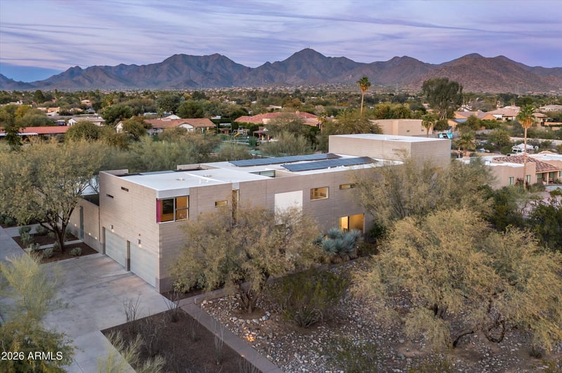 Listing details for 10010 Jenan Dr, Scottsdale, AZ 85260 : Essence of the Desert, an architecturally distinct estate featured in leading design publications including Dwell and Phoenix Home & Garden and designed by architect Amit Upadhye. This home reflects a disciplined approach to form, scale, and modern living.