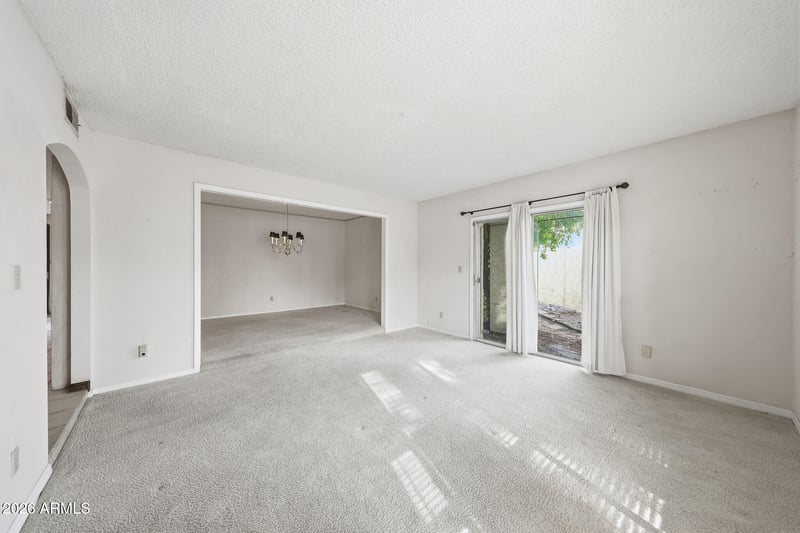 Listing details for 1002 Solar Dr, Phoenix, AZ 85021 : A rare opportunity to own a home in the highly sought-after Marrakech community within the Central Corridor, homes in this boutique neighborhood rarely become available. Tucked away in the far NE corner of the community, this home is ideally situated away from street noise, sharing only one short common wall and backing to the alley for added privacy. The home offers a spacious living room and formal dining, providing a wonderful canvas for updates and personalization. Multiple sliding glass doors fill the interior with natural light and offer access to a private courtyard, an inviting space ready to be refreshed for everyday living or entertaining. The additional family room features beamed ceilings, custom built-in bookcases, and a cozy gas fireplace, with direct access to the back patio. The expansive primary bedroom includes a walk-in closet and a generous en-suite bathroom, presenting an excellent opportunity to create a true retreat. A two-car garage with built-in storage cabinets adds convenience. With charming architectural details, a thoughtful floor plan, and room to enhance and update to your taste, this home offers exceptional potential. The central location is ideal, close to shopping, dining, walking trails, and quick access to SR-51 for easy travel throughout the Valley. Bring your vision and creativity, this is a rare chance to make this home your own in a premier location!