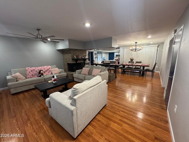 Listing details for 10026 52nd Dr, Glendale, AZ 85302 : Welcome home to this wonderful 3-bedroom, 2-bath ranch house situated on a 1/4-acre lot, complete with RV parking and an extended driveway. The custom front entry features an extra-wide steel door. Inside, the delightful open floor plan is adorned with a neutral palette. The spacious, updated kitchen includes stainless steel appliances, generous quartz countertops, and ample cabinet storage, all while seamlessly connecting to the living room. The living room is enhanced by a two-way fireplace, creating a warm and inviting ambiance. The primary bedroom is large and offers sliding door access to the patio. It also features an updated full bathroom with dual sinks and a walk-in closet. Step outside to the covered patio and enjoy the fully fenced backyard, which has ample space to roam.
