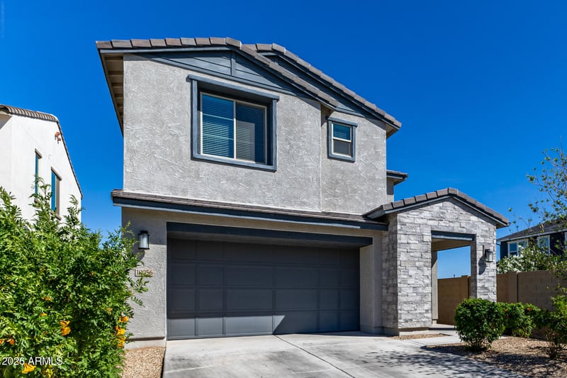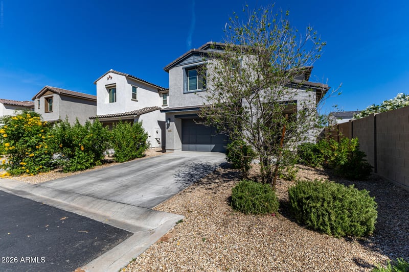 Listing details for 10056 Trent Ave, Mesa, AZ 85212 : Welcome to this spotless and beautifully upgraded 5-bedroom, 3-bath home located in the highly desirable Cadence community in East Mesa. Situated at the end of the street with limited neighbors, this home offers added privacy and an ideal location within the neighborhood. Thoughtfully designed with modern finishes throughout, it combines style, comfort, and functionality. You're greeted by a stunning chevron-pattern tile foyer that makes an immediate statement and sets the tone for the rest of the home. The open-concept floor plan provides generous living and dining spaces perfect for both everyday living and entertaining. Upstairs, a spacious loft offers flexible space ideal for a media room, play area, or home office. The upstairs bathroom features upgraded marble white and gray modern tile, adding a sleek contemporary touch, and ceiling fans are installed in every room for year-round comfort and energy efficiency. The backyard is beautifully finished with low-maintenance turf, creating a clean and functional outdoor space designed for easy living.
