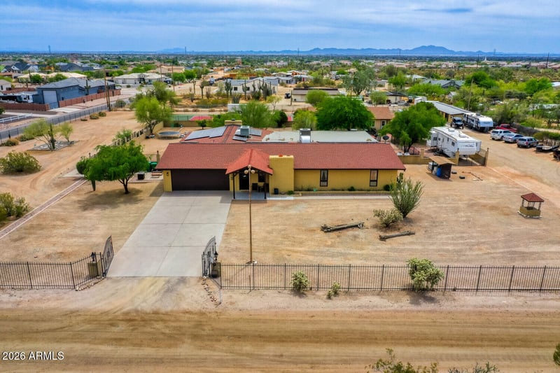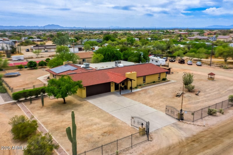 Listing details for 10226 Iris Rd, Mesa, AZ 85207 : Experience refined rural living on 2.3 private acres with breathtaking mountain views. This fully updated home features 6 spacious bedrooms and 6 bathrooms, offering both comfort and versatility. The main residence showcases granite countertops, three fireplaces, and a thoughtfully designed layout ideal for entertaining and everyday living. Step outside to a quiet, private retreat--complete with a sparkling pool, relaxing spa, and a full tennis/pickleball court--perfect for unwinding or hosting under open skies. Enjoy walking distance to hiking and biking trails, while still being conveniently close to shopping, dining, and everyday amenities. NO HOA. A separate casita provides additional space for guests, multigenerational living, or rental opportunities. The property is equipped wi solar energy and a private well, enhancing efficiency and self-sufficiency. Equestrian-friendly and zoned for horses, this exceptional home blends modern upgrades with the tranquility of rural living. The finished basement adds even more functional space, perfect for recreation or extended stays. A rare opportunity to own a private, fully upgraded estate with unmatched amenities and panoramic views.