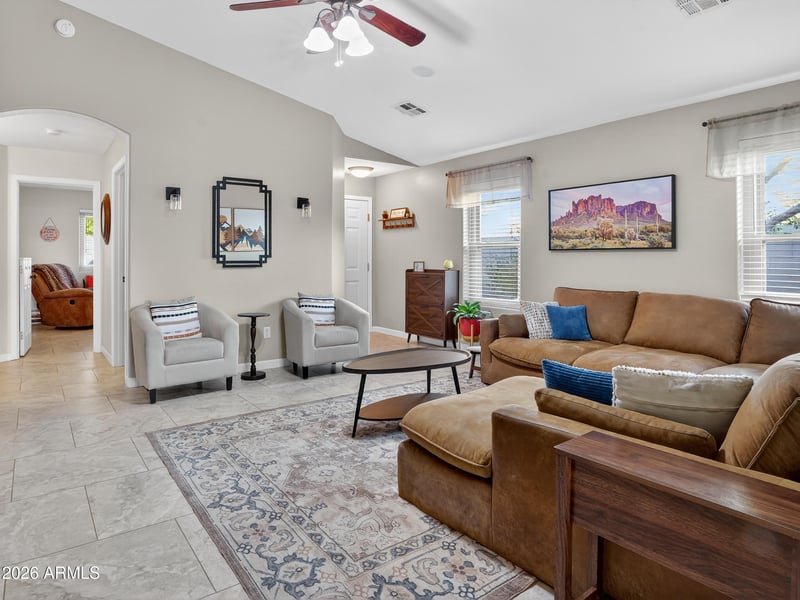Listing details for 10257 Cicero Cir, Mesa, AZ 85207 : Ideally located in Mesa with convenient access to Loop 202, shopping, dining, and more, this well maintained 4 bedroom, 2 bath home offers a great floor plan and a spacious 3 car garage. Newer paint, updated flooring, remodeled bathrooms, and a HVAC unit installed in 2023 are just some of the upgrades this home has to offer. The home also features a custom entertainment center, vaulted ceilings, and a large kitchen with ample cabinet space, center island, and eat in breakfast area with sliding glass door to the backyard. Outside you'll find mature landscaping, an extended front patio, and a stone veneer elevation for great curb appeal. The low maintenance backyard includes pavers, perfect for relaxing or entertaining. The 3 car garage also includes built in storage cabinets.