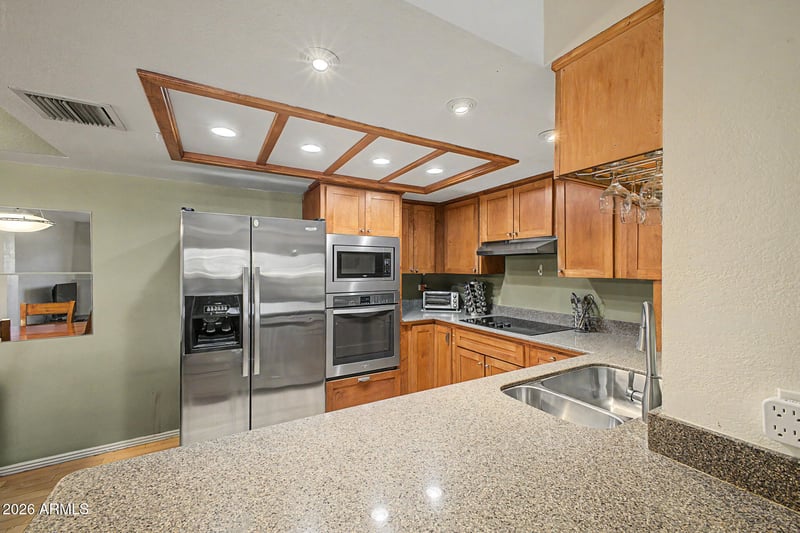 Listing details for 10410 Cave Creek Rd #1027, Phoenix, AZ 85020 : This ground-level, beautifully updated, move in ready condo, boasts one of the best locations in the highly desirable community of The Pointe Resort Condos at Tapatio Cliffs. The kitchen has Stainless Steel appliances and a breakfast bar. Enjoy the wood burning fireplace or relax on the private patio. The stacked washer/dryer is included. This picturesque gated community also offers 3 Pools, 3 Spas, Gas Grills, Tennis Court, Basketball Court, Green Belts, and Fountains. Conveniently located near North Mountain and other hiking trails, Golf, Restaurants, I-17, the 51 and 101. This is the perfect condo for you whether you are a full-time resident, snowbird, or investor. Furnishings and houseware items are available on a separate bill of sale.