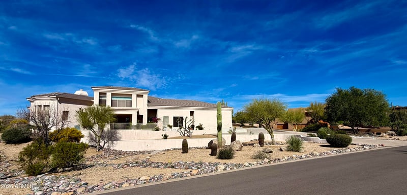 Listing details for 10460 Balancing Rock Rd, Scottsdale, AZ 85262 : Welcome to Candlewood Estates in Troon North, Set within a gated community. This well maintained home showcases true pride of ownership and timeless quality, with exterior walls built with concrete block. Offering 3 bedrooms, 3 full baths, 2 half baths (1 indoor powder room and 1 exterior half bath), the home clearly demonstrates thoughtful design and craftsmanship. Upon entering the formal foyer, you will see a decorative high dome ceiling. On the left is the formal living room with 16 foot high ceilings, complemented by a fireplace that creates an inviting gathering space. The staircase leads you to the cozy loft, which offers panoramic views of the mountains and Pinnacle Peak. The home is an entertainer's paradise with a sizable formal dining room, a wet bar, and an entire house.. surround sound music system. There is a dedicated office with 2 independent workspaces and built ins. There are also appliance garages in the kitchen and master bathroom. The second fireplace is perfectly placed in the master suite. A custom designed master closet has 4 adjacent closets for formal attire, 2 large shoe racks, and ample general hanging and drawers for miscellaneous use. All major air treatment items have been thoughtfully selected, including two 5 ton HVAC units, each with a controlled humidifier. In addition, new heavy duty tile roof underlayment was installed in 2022. The spacious laundry room offers generous storage along with a sizable laundry sink, creating a functional everyday workspace. There are no dark rooms in the house and they utilize lighting through solar tubes. There is a water softener and 2 reverse osmosis systems. Step outside to enjoy the private backyard with a swimming pool, a small garden, and various mature citrus trees. Located within Troon North residences enjoy access to nearby community parks, tennis courts, golf courses, scenic hiking trails, and playgrounds. This is an exceptional opportunity to own a meticulously cared for home in one of North Scottsdale's most sought after gated communities, offering privacy, tranquility, and a Troon North lifestyle.