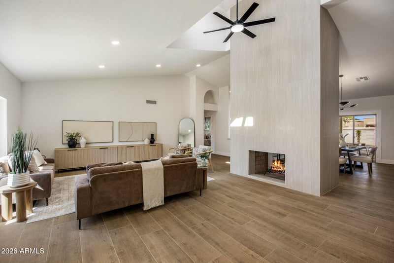 Listing details for 10580 San Salvador Dr, Scottsdale, AZ 85258 : REDUCED ALMOST 100,000 Experience modern luxury in a fully remodeled oasis. This home has been meticulously transformed blending timeless design with contemporary elegance. Designer touches & attention to detail. Step inside to a dramatic open floor plan, soaring vaulted ceilings & two way fireplace. Welcoming living space to enjoy with family, friends & endless entertaining. The kitchen boasts pristine quartz countertops, waterfall & custom cabinetry. A comfortable primary suite with spa like bathroom & large walk-in shower. The backyard is the perfect spot to relax & enjoy the newly remodeled pool. Benefit from the unparalleled Scottsdale Ranch lifestyle with access to the community center, Lake Serena, nearby parks & tennis courts. Truly a perfect home in a perfect location! Owner Agent A member of the selling entity holds an active Arizona real estate license.