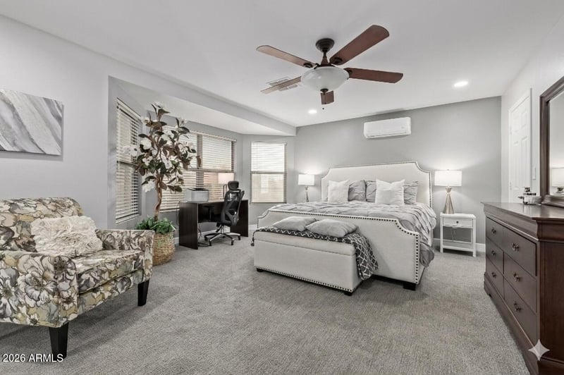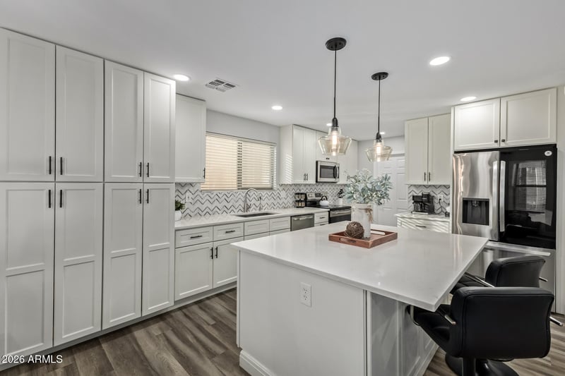Listing details for 10617 Daley Ln, Peoria, AZ 85383 : Beautiful fully renovated home in the highly sought-after Alta Vista community in North Peoria with no HOA. The property features a rare heated pool with waterfall and lighting, RV gate, and a private backyard perfect for relaxing or entertaining. The home offers 4 bedrooms plus an office that can also be used as a guest room, along with 3 bathrooms. The office sits next to a full bathroom, providing privacy for guests. The remaining bedrooms are upstairs, including the spacious primary suite with dual sinks, soaking tub, and walk-in closet. Inside you'll find an open layout with luxury vinyl flooring, modern finishes, and a bright kitchen with a large quartz island. The kitchen includes soft-close cabinets, pull-out drawers, stainless steel appliances, reverse osmosis, and a gas line option for cooking. Additional upgrades include a new sprinkler system, updated landscaping, and newer refrigerator, washer, and dryer. The garage is equipped with mini-split air conditioning, creating a comfortable space for a gym, workshop, or extra storage. Located close to shopping, dining, parks, hiking trails, and great schools, with Alta Vista Park nearby offering tennis, pickleball, basketball courts, and a playground. Hurry this Gem won't last long!