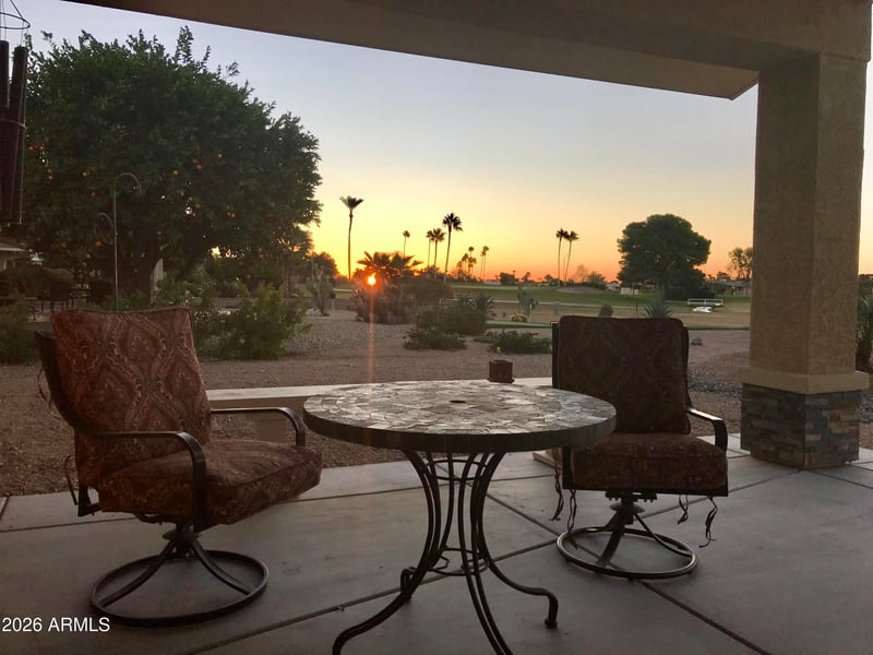 Listing details for 10805 Willowbrook Dr, Sun City, AZ 85373 : Golf course living at its best - this spacious Sun City home sits on the fairway with sweeping views of the Willowbrook course and stunning Arizona sunsets. Designed for both comfort and entertaining, the open concept layout features a large kitchen with custom cabinetry, oversized island and seamless flow into the main living areas. Enjoy two generously sized bedrooms, 2.5 baths for added guest convenience and multiple spaces to relax or host. Step outside to your covered patio and take in peaceful mornings overlooking the green. Situated on a quarter-acre lot with low-maintenance desert landscaping, this home offers the perfect blend of space, privacy and the sought after Sun City lifestyle. Ideal for full-time living or a seasonal retreat - move in ready and priced to sell.