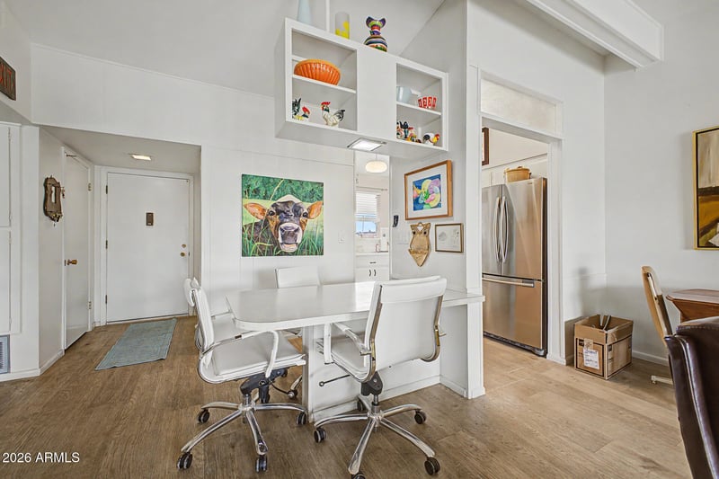 Listing details for 10807 Fairway Ct #212, Sun City, AZ 85351 : Seize the chance to own this charming apartment unit at Fairway Court West in Sun City! Discover an inviting living room with vaulted ceilings, a soothing palette, and wood-look flooring. The well-appointed kitchen comes with crisp white cabinetry and essential built-in appliances for a seamless cooking experience. The primary bedroom includes ample closet space, a make-up vanity, and a private bathroom for added comfort. Unwind on the lovely balcony, which offers serene views of the golf course. Don't miss out on this one!