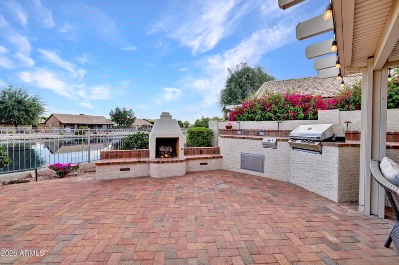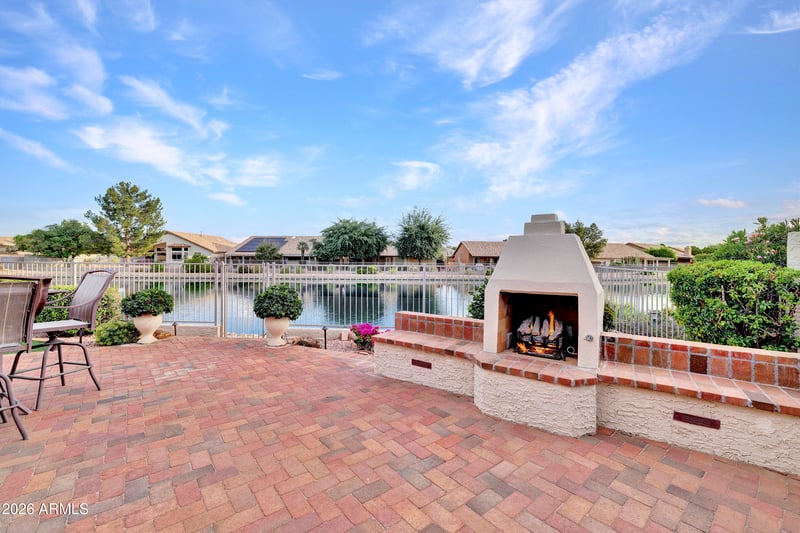 Listing details for 10823 Irma Ln, Peoria, AZ 85373 : Exquisitely updated and offered furnished, this Mediterranean-inspired lakeside residence blends luxury, comfort, & effortless desert living. A terra-cotta paved entry welcomes you into a bright, open floor plan enhanced by warm desert tones, custom finishes, & quality craftsmanship throughout. The remodeled kitchen showcases custom cherry cabinetry, upgraded appliances, Creme of Bordeaux granite & backsplash. Recessed adjustable lighting & a soft neutral palette create an elegant yet inviting ambiance. Major improvements provide true move-in-ready confidence, incl roof underlayment (2022), energy-efficient leased solar, ext paint (2020), HW Heater (2019), garage door (2023), & new HVAC/duct cleaning (2025), RO sys & dishwasher/microwave (2022). The lakeside backyard is an inviting retreat thoughtfully designed for exceptional outdoor living with a custom-paved patio, natural stone waterfall, built-in gas fireplace, & grill. Spectacular sunrise & sunset views reflect across the water, framed by majestic mountain vistas & Arizona's stunning desert skies. Ventana Lakes offers an exceptional resort lifestyle with 9 lakes, walking paths, fishing, 4 pools/spas, pickleball, tennis, bocce, fitness center, & vibrant social events, all close to shopping, dining, & everyday amenities. A rare opportunity to own a beautifully furnished, impeccably updated waterfront home designed for relaxed luxury living.