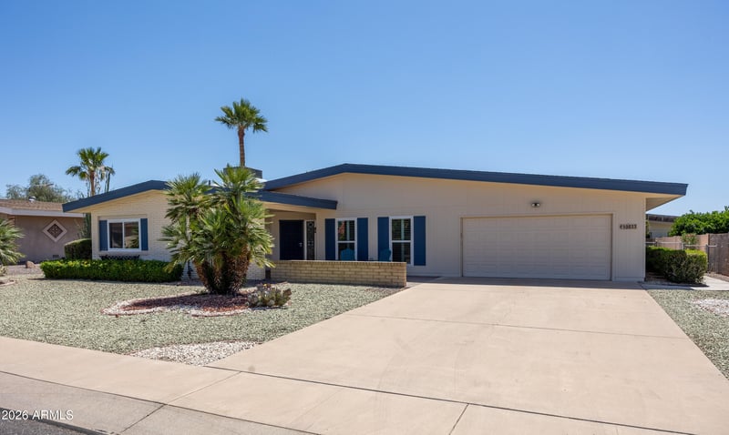 Listing details for 10833 Acacia Dr, Sun City, AZ 85373 : Classic mid-century modern home nestled in the quiet Phase 3 Sun City neighborhood! This 3 bedroom/2 bath, a great floor plan that has an open flow between the living/dining area and the spacious Arizona room that has plenty of natural light! Motorized shades to play with for your enjoyment! Updated tile flooring throughout and Hunter Douglas plantation shutters too! Energy efficient dual-pane windows! Updated quartz counters and appliances in the kitchen. New Trane A/C just installed in 2024! The private fenced backyard with a RV gate, is low maintenance with plenty of space for entertaining! You do not want to miss out on this one! It will not last long!