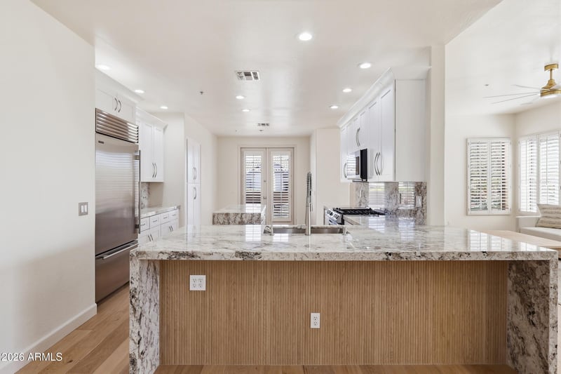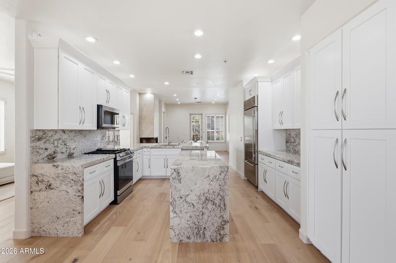 Listing details for 10846 Salt Bush Dr, Scottsdale, AZ 85255 : Set behind the gates of McDowell Mountain Ranch, this single-level residence reflects true pride of ownership and a thoughtful commitment to quality--over $100,000 in recent property improvements designed to elevate everyday living. From the moment you step inside, the home feels refined and welcoming, anchored by brand-new French oak wood flooring (2026) and an open layout that connects living, dining, and kitchen spaces with ease. The remodeled kitchen (2024) is the heart of the home, featuring white Shaker cabinetry, an oversized island and breakfast bar, newer stainless appliances (2024), and a Viking refrigerator--a clean, timeless finish that fits both quiet mornings and entertaining. The split primary suite offers separation and comfort, with a spacious bath including double vanity and separate tub and shower. Outside, the home's setting truly shines: a front courtyard entry leads to a professionally landscaped backyard with mountain views, a Pebble Tec saltwater pool and spa, and upgraded pool equipment plus a pool heater (2024)--creating a resort-style experience at home. Gather under the covered patio, pull the motorized retractable awning for shade, and enjoy the built-in gas BBQ. Additional features include a dog run and dog door, and a 2-car garage with epoxy floors, storage cabinetry, and a workbench. Zero interior steps add ease and flexibility. McDowell Mountain Ranch amenities include community pool/spa, tennis, golf, and biking/walking paths. 3D tour and floor plan included. Nearby Amenity List (named + distances) Desert Canyon Elementary School (0.9 mi) Desert Canyon Middle School (0.9 mi) Desert Mountain High School (3.6 mi) McDowell Mountain Ranch Aquatic & Fitness Center (distance TBD--verify) Loop 101 access via Frank Lloyd Wright Blvd / Thompson Peak Pkwy