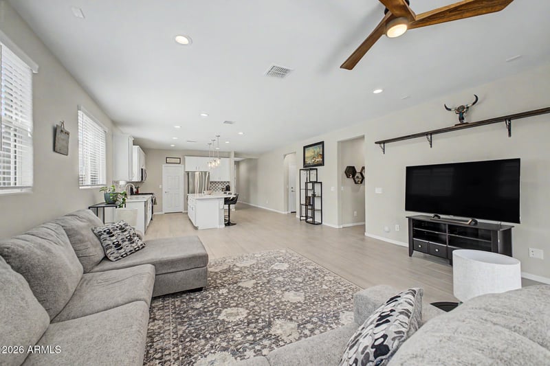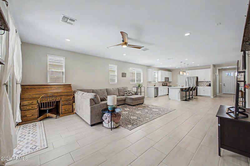 Listing details for 10861 Fillmore St, Avondale, AZ 85323 : Fantastic opportunity to own this delightful 4-bedroom residence in Roosevelt Park! Fall in love w/ the enchanting open layout featuring high ceilings, recessed lighting, blinds, durable tile flooring, & sliding door access to the backyard. The gourmet kitchen comes w/ solid surface counters, white shaker cabinetry w/ crown moulding, chic pendant lighting, a striking tile backsplash, stainless steel appliances, a walk-in pantry, & an island w/ a breakfast bar. You'll also find a cozy den ideal for an office or study. The primary bedroom showcases soft carpeting, an ensuite w/ double sinks, & a convenient walk-in closet. Spend peaceful moments in the backyard, complete w/ a covered patio, travertine pavers, pristine artificial turf, & a fire pit for starlit evenings. Make this gem yours!