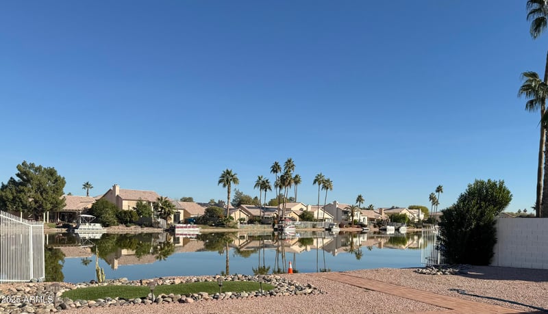 Listing details for 10940 Clover Way, Avondale, AZ 85392 : Welcome to lakeside living in desirable Garden Lakes! This 3-bedroom home, with an office/den, offers a thoughtful floor plan featuring formal living and dining rooms, plus a cozy family room off the kitchen with vaulted ceilings throughout. Recent upgrades include stunning wood-style luxury vinyl flooring, a freshly painted interior, brand-new kitchen countertops, range, microwave, and disposal. Enjoy peace of mind with a roof underlayment replaced in 2013. The North-South exposure fills the home with natural light, while the serene lakefront setting provides tranquil views. A spacious 2-car garage completes this must-see property. Don't miss the chance to make it yours!
