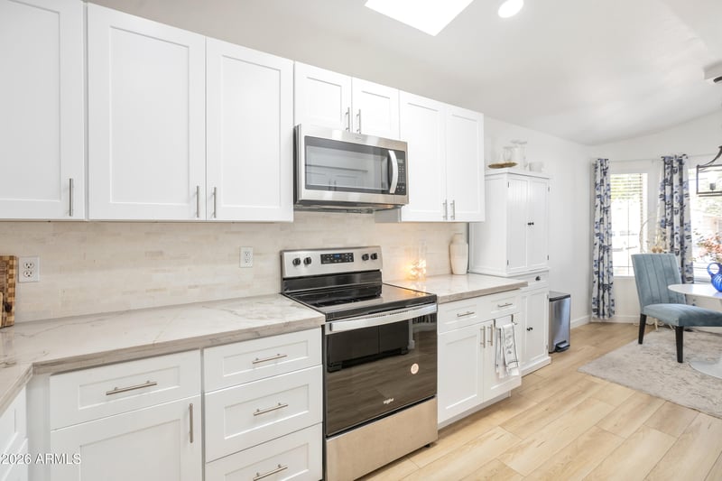 Listing details for 10951 Delta Ave, Mesa, AZ 85208 : Immaculate, single-story home with a pool! This home is turn-key! The kitchen is stunning with its newer white cabinets, quartz countertops, and appliances that were installed in 2023. Enjoy a second eating area with a window view, perfect for family gatherings or an additional workspace. Both bathrooms have also been updated, as well as the flooring. A new glass door was added to the primary bath. A brand-new HVAC was installed in 2024 to keep you cool as our temperatures rise! The water heater is just three years old! Come enjoy the pool and backyard that has been updated with pavers, artificial turf, shrubs and a drip water system. This lovely Mesa neighbor is close to shopping and freeway access for your convenience.