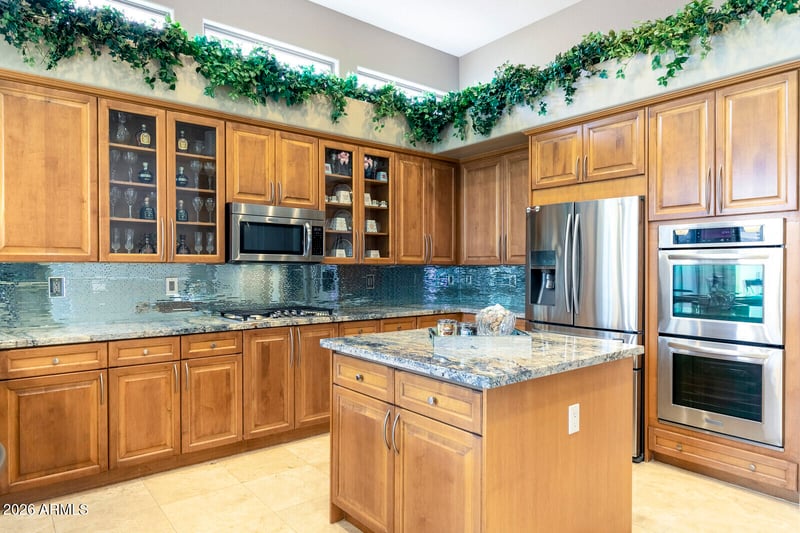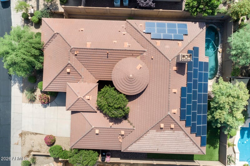 Listing details for 10975 Kora Ln, Scottsdale, AZ 85255 : Freshly painted 5 Bdrm/3.5 Bath Edmunds Home in World Class McDowell Mtn Ranch. Manned Guard Gate Entry. Community Rec Ctr/Community Pool/Fitness/Tennis and miles of Hiking and Biking Trails. Single Level, 3393 sq ft, 3 Car Garage, Heated Pool and Spa. Turf yard, low maintenance easy care. Built in BBQ, North/South Exposure. Tesla Solar Panels Lease. Oversized kitchen island and counter space. Gorgeous Granite Counters and Custom Backsplash. Stainless Steel Appliances. Wine chiller, wine bar, formal dining and living rooms. Great Room off the kitchen for relaxation. Open slider doors and enjoy the covered patio and refreshing pebble tec pool and spa. Beautiful custom lighting and decor throughout. Wallpaper, designs features and custom paint. Exterior painted Feb 2026. One New AC Unit. Relaxing Primary Bath with glass shower and free standing soaking tub. Beautiful granite counters and tile floors. Walk in closet. Access to yard from Primary suite. Secondary en-suite with walk in closet and full bath. Third and fourth bedrooms have a Jack and Jill shared bathroom. Bedroom 5 has slider access to courtyard. Powder room in hall for guests and entertaining. Community Rec Center with fitness, weights, swimming, tennis and sun relaxation around the lap pool overlooking the entire valley. 24hr manned guard gate for extra security. Scottsdale School District. World class amenities throughout the North Scottsdale area. Kierland, Scottsdale Quarter, Fashion Square and Old Town. Golf at McDowell Mtn Golf Club just minutes from your door in McDowell Mtn Ranch. Grayhawk, Troon North, TPC Scottsdale all nearby. Enjoy it all from this wonderful hillside, gated residence.