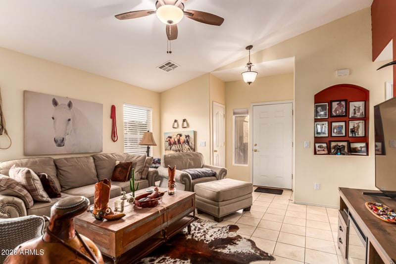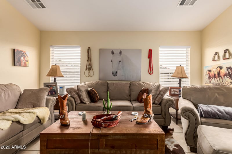 Listing details for 1100 232nd Ave, Buckeye, AZ 85326 : Located in the Sundance active adult community in Buckeye, this 55+ residence offers a comfortable, low-upkeep lifestyle. Built in 2005, the 2-bedroom, 2-bath home sits on a corner lot and includes a private swimming pool. The interior features an open-concept layout with a generous living area, a practical kitchen design, and a secluded owner's suite. Outdoor living is easy with a covered patio and pool, perfect for enjoying Arizona's climate. Positioned on a quiet street with nearby access to golf courses, parks, shopping, and major roadways.