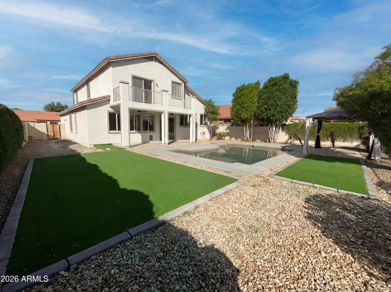 Listing details for 1105 Portland Ave, Gilbert, AZ 85296 : Introducing 1105 S Portland Ave, a home that exudes charm and sophistication. The fresh interior paint provides a clean and modern canvas, while the cozy fireplace adds a touch of warmth. The kitchen is a chef's dream, boasting all stainless steel appliances, an accent backsplash, and a convenient kitchen island. The primary bedroom features a spacious walk-in closet, and the primary bathroom is a haven of relaxation with double sinks, a separate tub, and shower. Outside, a covered patio overlooks a private in-ground pool, perfect for summer fun. The fenced-in backyard ensures privacy and security. This home is a true gem, waiting for you to make it your own.. Included 100-Day Home Warranty with buyer activation