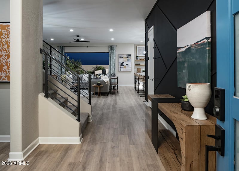 Listing details for 11109 Utah Ave, Mesa, AZ 85212 : Our Upland modern model is for sale! Make the most of every moment in the elegant Upland model home that is professionally designed and furnished! The first floor features a secluded bedroom with full bathroom, open-concept kitchen, casual dining area, and great room overlooking a pool, an outdoor kitchen, and spacious covered patio. The kitchen impresses with a generous island with breakfast bar, walk-in pantry, and ample counter space. On the second level, you'll find the luxurious primary bedroom suite, which includes a primary bath with private water closet and large walk in closet. Two additional bedrooms with a shared hall bath, one with a walk-in closet, and a spacious loft complete the second floor. Please visit to learn about bidding process!