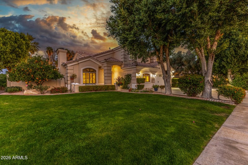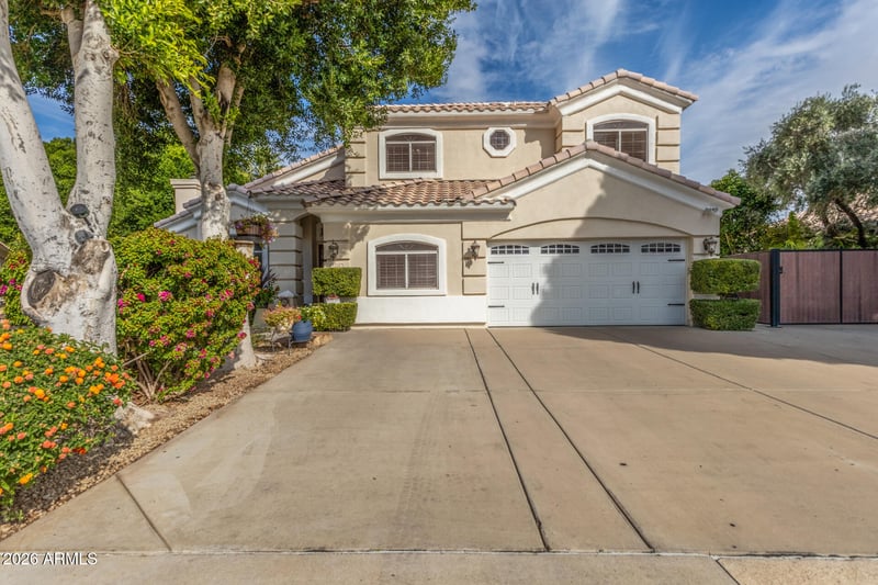 Listing details for 1111 Alba Cir, Mesa, AZ 85213 : Situated on a PRIME CUL-DE-SAC, surrounded by mature trees and lush landscaping, this well-maintained 5 Bed/3 Bath + Office offers an exceptional combination of space, functionality, and location — all with NO HOA. The versatile floor plan includes one bedroom & full bath on the main level, with three secondary bedrooms, an additional bath, & the primary suite upstairs.