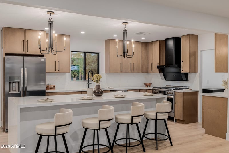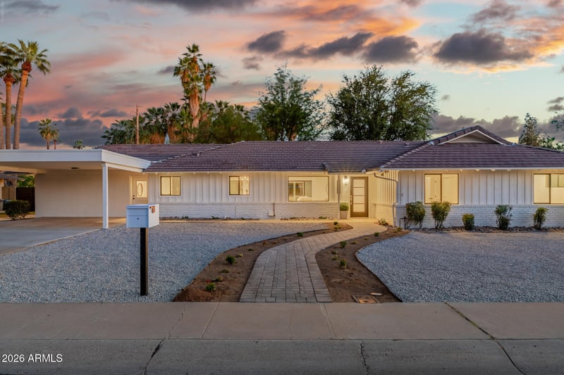 Listing details for 1111 Townley Ave, Phoenix, AZ 85021 : A fully remodeled, single-level home in Palm View Estates with no HOA, offering the space and layout buyers look for in this neighborhood. This 4-bedroom, 3-bath home includes an attached casita and a complete top-to-bottom renovation. The kitchen centers around an oversized island with quartz countertops, new cabinetry, and all-new appliances, opening to the main living and dining areas. Sliding doors lead to a large backyard, extending the living space outdoors for gatherings and entertaining. The primary suite features a spacious bedroom, walk-in closet, and backyard access. The attached casita includes its own bedroom, bathroom, walk-in closet, and washer/dryer hookup. Updates throughout include all-new flooring, cabinetry, windows, and doors, giving the home a clean, modern finish Located in the desirable Palm View Estates neighborhood, with Butler Park just a short walk away for green space, walking paths, and everyday outdoor enjoyment.