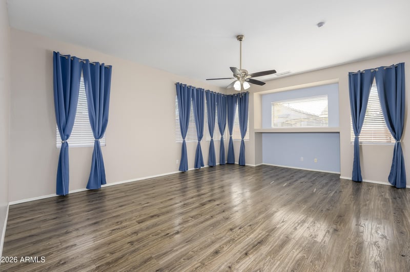 Listing details for 11195 Alvarado Rd, Avondale, AZ 85392 : Spacious 1,944 sq ft 3 bed/2 bath home in Avondale, minutes from I-10 and near Luke Air Force Base. Soaring ceilings create an open, airy feel, while the split floorplan offers privacy. The generous primary suite features dual vanities, separate tub and shower, and patio access. Water-resistant wood laminate (AquaGuard), tile, and newer carpet in bedrooms add style and durability. Flexible formal dining can serve as an office or playroom. North/South exposure, 3-car garage, and newer AC (2022) complete this move-in ready home.