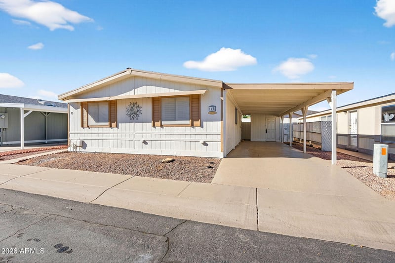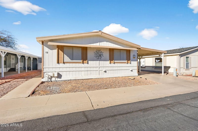 Listing details for 11275 99th Ave #13, Peoria, AZ 85345 : Completely remodeled manufactured home in Peoria located in a rare all-ages community with owned land and rentals allowed--a great opportunity for both homeowners and investors. This move-in ready home features fresh interior paint, updated finishes, and a brand new A/C system, providing comfort and efficiency for Arizona living. Enjoy covered parking, low-maintenance desert landscaping, and a convenient location near shopping, dining, and freeway access. Unlike many manufactured home communities, this property includes fee-simple owned land (no land lease). Perfect as a primary residence, winter home, or Peoria investment property with rental potential.