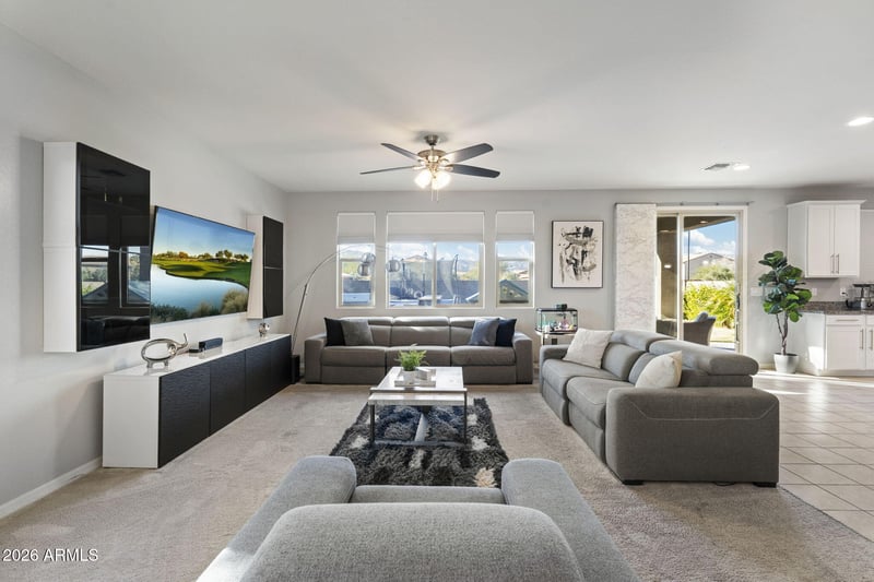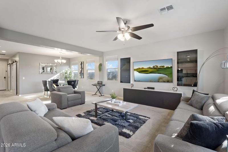 Listing details for 11284 186th Ln, Surprise, AZ 85388 : Pride of home ownership shows in this like new 2020 built 2-story home!!! Everyone has their own space here! Spacious rooms, and plenty of storage/closets throughout home. Tastefully decorated, this stunner has a large office/den with barn doors at the front of the home, enter into a large dining and family room, with open concept kitchen with island and door to large backyard with pavers and real grass! Outdoor kitchen and incredible mountain views!!! Generous landscaping in front and back! Upstairs are 4 spacious bedrooms, functional large laundry room with storage and giant loft for game room, or teen room. This home has been well cared for!
