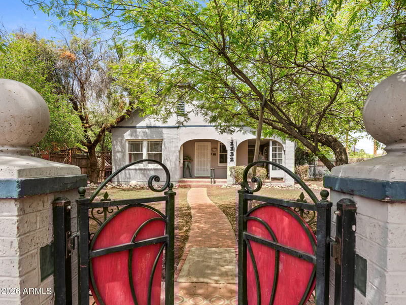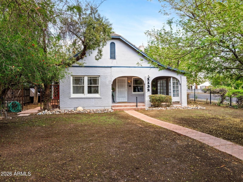 Listing details for 1132 Weldon Ave, Phoenix, AZ 85014 : Tucked within the historic Idylwilde Park neighborhood, this 1929 French Tudor-style home offers a rare opportunity to own a piece of Phoenix history in one of its most distinctive communities. Set on a 5,500 square foot lot with a generously sized, irrigated front yard, the home welcomes you with a sense of charm that carries throughout. Inside, natural light fills the space through an abundance of windows, creating an airy yet cozy atmosphere. Wood flooring runs throughout, and the living room serves as a natural gathering place, anchored by a beautifully detailed fireplace with subtle 1920s influence. The kitchen remains true to the home's character, with unique design elements that add personality and a sense of story. The main home features two bedrooms and one bathroom, offerin Tucked within the historic Idylwilde Park neighborhood, this 1929 French Tudor-style home offers a rare opportunity to own a piece of Phoenix history in one of its most distinctive communities. Set on a 5,500 square foot lot with a generously sized, irrigated front yard, the home welcomes you with a sense of charm that carries throughout. Inside, natural light fills the space through an abundance of windows, creating an airy yet cozy atmosphere. Wood flooring runs throughout, and the living room serves as a natural gathering place, anchored by a beautifully detailed fireplace with subtle 1920s influence. layout that feels both functional and connected to its original design. A standout feature of the property is the attached guest suite, complete with its own entrance and full bathroom. Whether used as a private primary retreat, guest quarters, or flexible living space, it offers a level of versatility that is rare for homes of this era. The outdoor spaces feel lush and inviting, with mature trees surrounding the property, including a large mulberry tree. Small, thoughtful details like an outdoor sink and re-potting area add to the home's charm, creating spaces that feel both personal and intentional. The overall setting feels removed from the desert surroundings, while still being moments from the heart of the city. Located just minutes from Midtown and Downtown Phoenix, Idylwilde Park is known for its private resident-only park and close-knit community feel. This is a home for someone who values character over convention, and history over trends.