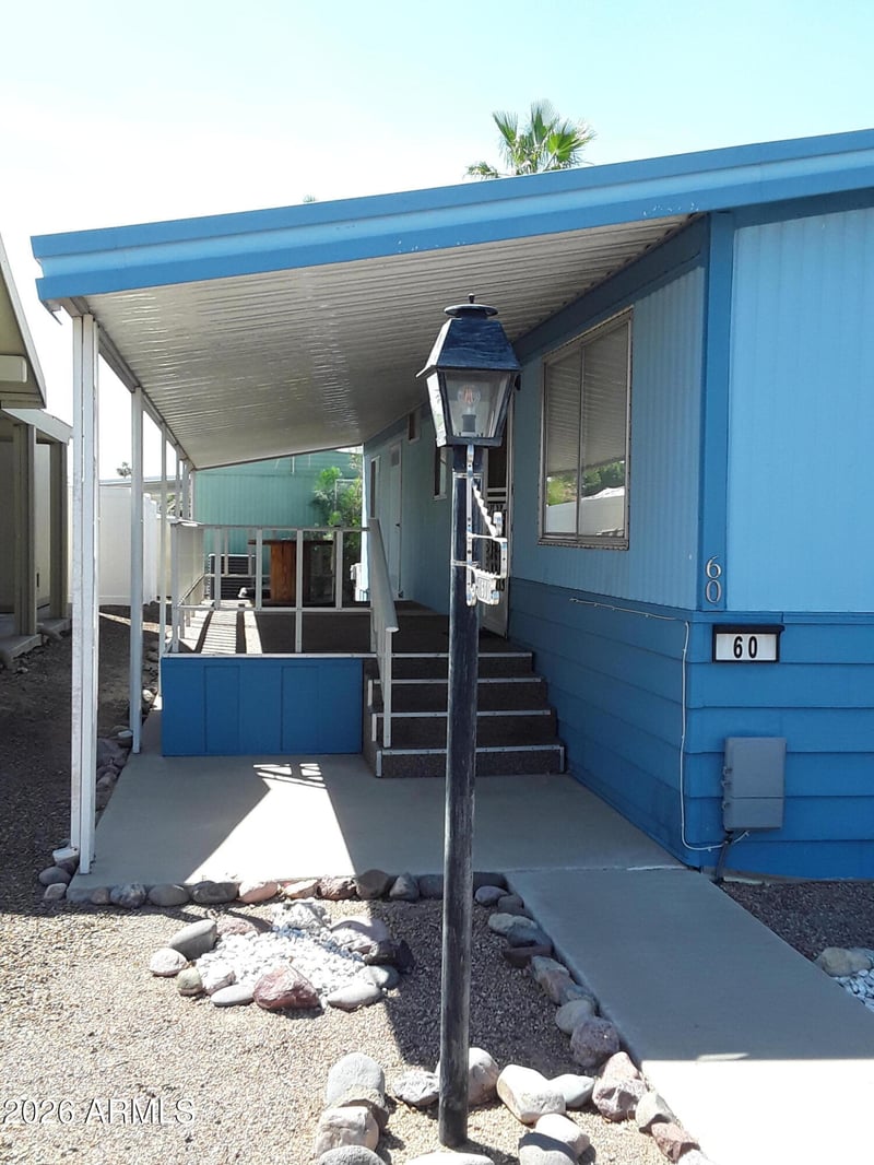 Listing details for 11411 91st Ave #60, Peoria, AZ 85345 : PRICED TO SELL! This sweet & cozy home is clean and ready to occupy with new carpet. Nice open kitchen with all appliances. Covered patio & side entrance, 2 car carport, storage shed. Roof replaced in 2019 & HVAC replaced in 2018. Casa Del Sol West is situated in a gated age restricted 55+ community. Special amenities include nice clubhouse, community events, fitness center, heated pool/spa. Homes in this park are on leased land & owner park approval is required, base lot rent is $1,001/month. Close to shopping, Loop 101, hospitals/clinics, casino & sports venues.