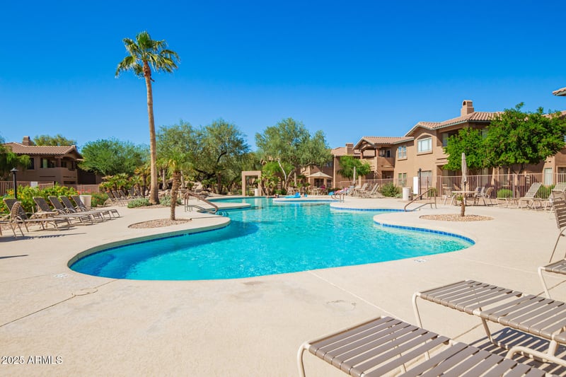 Listing details for 11500 Cochise Dr #1099, Scottsdale, AZ 85259 : Enjoy the charm and character of this well maintained condo, featuring timeless details and a layout designed for everyday comfort and ease. The kitchen features granite countertops, a breakfast bar, top-tier appliances, and ample pantry space, making entertaining effortless in the open dining and living areas. The spacious primary suite includes a walk in closet, double vanity, and a luxurious bath, perfect for relaxation and comfort. Enjoy a bright and airy layout with in unit laundry and freshly shampooed carpets throughout. Step outside to a covered patio ideal for relaxing and entertaining. Dive into resort style living with access to community amenities including a pool and spa, billiards room, workout facility, media/library room, and your own one car garage!