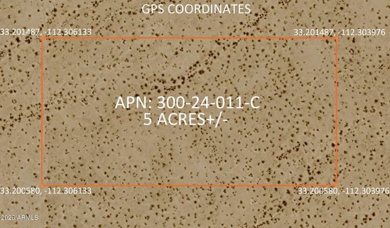 Listing details for 11501 Hunt Hw #-, Goodyear, AZ 85395 : 5 ACRES FOR SALE SOUTH OF GOODYEAR & BUCKEYE ARIZONA. ENJOY THE WIDE OPEN SPACE AND PRIVACY. PANORAMIC MOUNTAIN AND DESERT VIEWS! ADJOINING PARCEL TO THE SOUTH ALSO FOR SALE. ZONED R-190. MARICOPA COUNTY APN 300-24-011-C. *SELLER MAY CARRY*BUYER TO VERIFY SCHOOLS, ZONING / USE , UTILITIES, ACCESS & ALL PERTINENT INFORMATION *DIRECTIONS - RIGGS RD & BULLARD- EAST ON RIGGS TO APPX 115TH AVE, SOUTH APPX 1 MILE, JUST PAST HUNT HWY ALIGNMENT. NO DIRECT ROAD ACCESS. DO NOT USE ADDRESS TO LOCATE, MUST USE AERIAL GIS MAPS & GPS COORD 33.201029, -112.305054