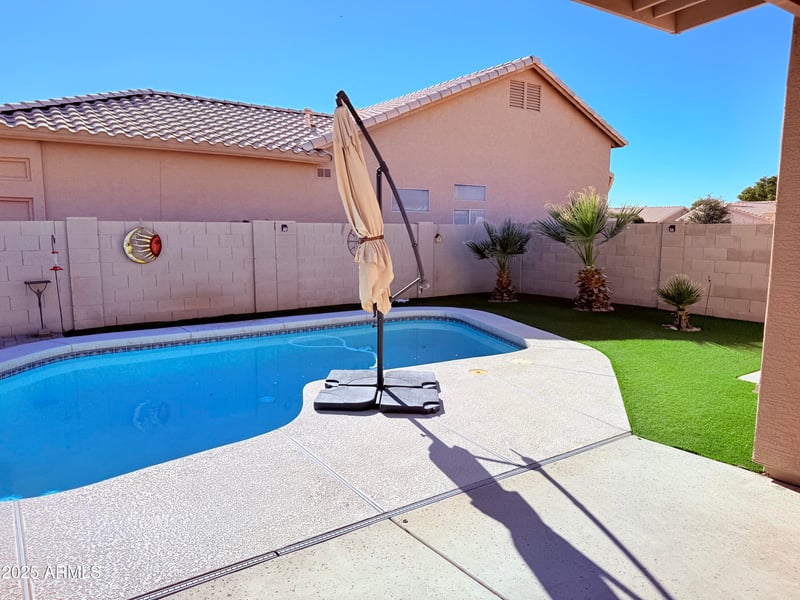 Listing details for 11519 King Snake Ct, Surprise, AZ 85378 : Located in the desirable all-ages Coyote Lakes Golf Course Community, this well-maintained home sits on a corner lot and features a private swimming pool, ideal for enjoying Arizona living year-round. Recent updates include new flooring and fresh interior paint, giving the home a bright, clean, and modern feel. The open floor plan offers spacious living and dining areas with abundant natural light, making it ideal for everyday living and entertaining. A versatile den provides flexibility for a home office, guest space, or optional additional bedroom, depending on buyer needs. The backyard is designed for outdoor enjoyment, featuring a sparkling pool and ample space for relaxing, entertaining, or hosting gatherings. The corner lot enhances privacy and curb appeal, while also offering... additional outdoor space. Situated in a well-established golf course community with nearby walking paths and scenic surroundings. Conveniently located close to shopping, dining, parks, and freeway access, offering both comfort and convenience.