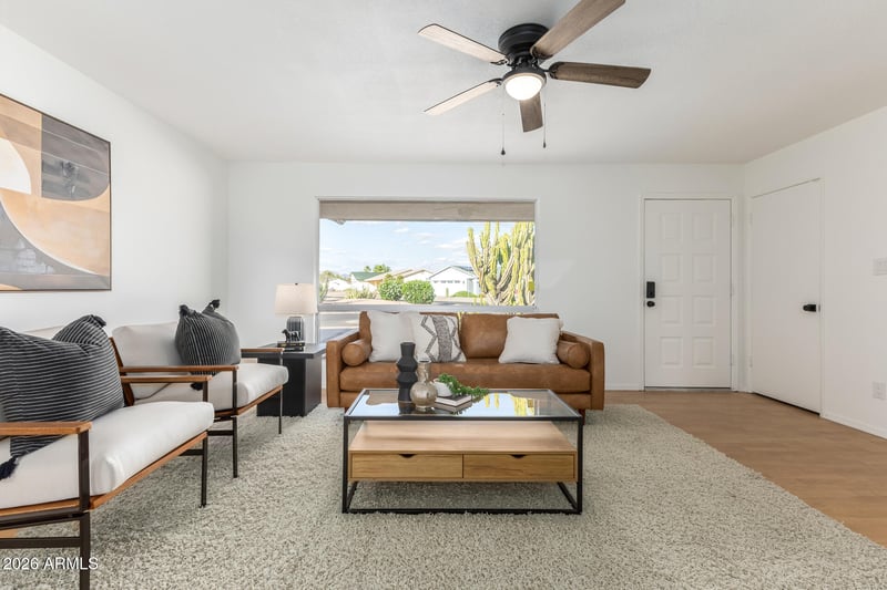 Listing details for 1152 81st Pl, Mesa, AZ 85208 : Remodeled 2 bed, 2 bath home in Fountain of the Sun—an active adult golf course community—featuring fresh interior & exterior paint, an oversized cul-de-sac lot & a spacious layout designed for comfort & convenience. The primary suite offers dual closets and a tiled roll-in shower, while the inviting living area includes a cozy fireplace & enclosed patio. The kitchen boasts a breakfast bar & generous eat-in space, perfect for casual dining. A separate laundry room includes built-in cabinets for added storage & functionality. The 2-car garage also features built-in cabinets, providing excellent organization and workspace options. With a newer roof & thoughtful upgrades throughout, this move-in-ready home blends style & accessibility in one of the area's most desirable 55+ communities.