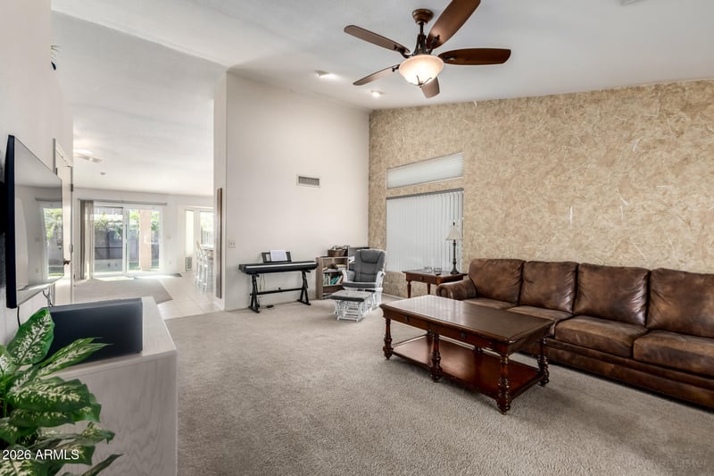 Listing details for 11622 76th Dr, Peoria, AZ 85345 : Start living your Dream in this Spacious 4-bedroom home in a wonderful Peoria Neighborhood. Thoughtfully designed interior boasts an inviting living room and a desirable great room, offering the perfect setting for both get-togethers & relaxation. Stylish touches include a blend of tile & carpet flooring, ceiling fans, neutral paint, and vaulted ceilings that add to the spacious feel. Lovely kitchen comes w/matching appliances, recessed lighting, abundant cabinets, tile backsplash, solid surface counters, a center island w/a breakfast bar, and a bay window in the dining area. Double doors upon approach to main bedroom, which features direct outdoor access and a private bathroom with a huge walk in shower. Unwind under a covered patio w/a refreshing drink and take a dip in the well maintained pebble tech pool just outside of the main bedroom. AC was replaced in April of 2024! DUAL PANE WINDOWS THROUGHOUT! Located on a quiet street with low traffic. Fruit trees include kumquat and grapefruit tree out back. New Updates Include: * New guest bathroom faucets 2026 * New kitchen faucets 2026 * New stove/range 2024 * New garage door opener 2024 * New AC 2024 * New Microwave 2023 * Bathroom undersink/stops plumbing updated 2023 * New water softener for entire house 2023