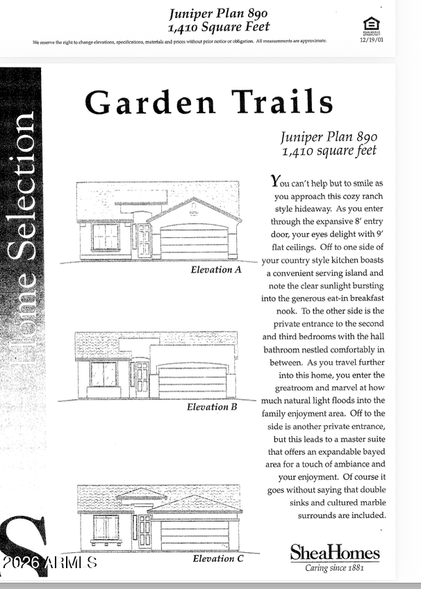 It has just been updated with lots of new... new paint, new carpet, new appliances. Shea Homes ''Juniper'' plan, well thought-out, with split bedrooms... The kitchen is the centerpiece here, featuring an island, and a window to the great room. A covered patio leads to an open back yard. No rear neighbors - that is a park back there. No front neighbors, either. All in all, this is a great home! Some lucky buyer gets to make it theirs...