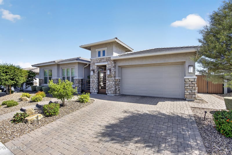 Listing details for 11635 Candelilla Way, Peoria, AZ 85383 : Here is the home you have been looking for, nested in the beautiful Vistancia Village neighborhood! 2021 build, this home has been meticulously maintained and upgraded throughout. Starting as you enter the custom front iron gate and private courtyard that welcomes you home. Inside you will find matching tiled floors throughout and complimentary Sherwin Williams Suede paint offering a neutral pallet ready for your designer touches. Two flex spaces in addition to the three bedrooms are thoughtfully laid out to maximize space.The primary retreat has backyard access, custom electric pirouette shutters, full closet build out and lighting. The main gathering area of this home is the expansive kitchen, living and dining room space. You will find pull outs in the kitchen cabinets, GE Cafe appliances and LG ThinQ cabinet depth refrigerator that makes 3 types of ice cubes! Extra storage comes from the walk in pantry and a full wall of cabinetry including glass front upper cabinets in the dining area plus a beverage fridge. Entertaining will be a breeze gathered around the oversized island with modern matte finish sink and gooseneck faucet. Upgraded designer lighting ties the entire space together. The show stopping backyard is an extension of the main living area with upgrades galore including 90 degree, corner stacking, slider doors that create a seamless corner opening between indoor and outdoor living spaces. Enjoy your heated pool and spa year round, serene water feature, lighting and dedicated pergola for shade and relaxation. The 7' extended patio is equipped with custom electric remote controlled sun shades to fully enclose the patio for privacy or sun protection. Artificial turf along with smart landscaping and plants make this oasis a space you can enjoy for years to come! As if that was not enough, this home has 44 owned solar panels with 2 power walls offering maximum efficiency. 220V power outlet in the 4 car garage, epoxy flooring, overhead storage system, sleek black garage cabinetry with locks and temperature controlled mini split AC system including remote. The only thing this house is missing is you!