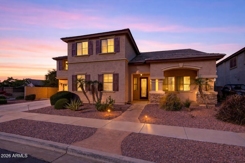 Listing details for 11728 144th Dr, Surprise, AZ 85379 : Set on an oversized homesite with no direct neighbors to the rear or side, this property offers exceptional privacy within the gated Mountain Gate community. The expansive two-story floorplan is designed for both everyday living and entertaining, featuring formal living and dining rooms, a spacious family room, and a dedicated game room complete with a bar and in-ceiling speakers. The kitchen is the heart of the home and well-appointed with a gas cooktop, built-in oven/microwave, and abundant granite countertop space. Step outside to a true backyard retreat, showcasing a sparkling pool and spa, a built-in BBQ, and a putting green. Perfect for hosting or relaxing. Upstairs, you'll find generously sized bedrooms, a large loft, and a luxurious primary suite with a two-way fireplace, jetted tub, and an expansive walk-in closet. Additional highlights include a 3-car garage with built-in cabinetry and a workbench. A standout opportunity in the rapidly growing city of Surprise. This home is a must-see.
