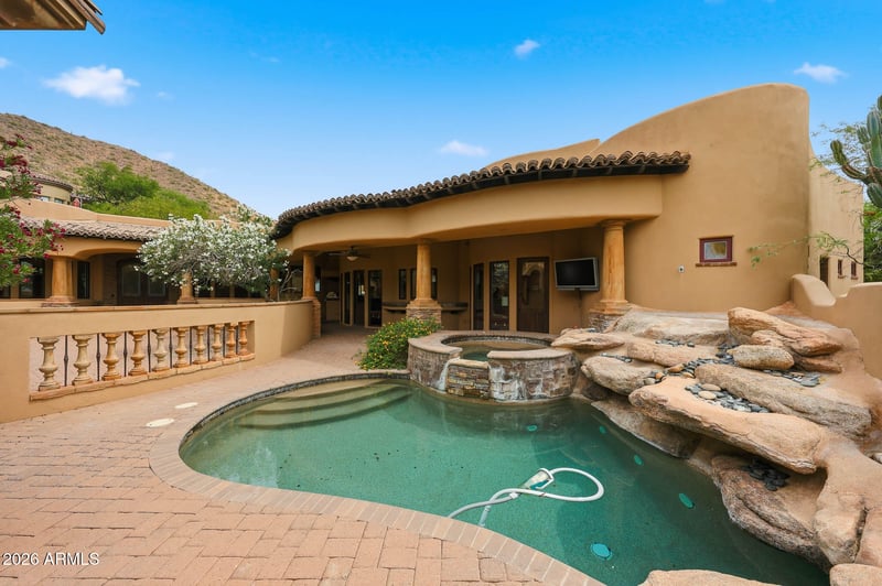 Listing details for 11734 Desert Trail Rd, Scottsdale, AZ 85259 : Rare opportunity to own within the guard-gated community of Ancala Country Club. Privately tucked on a quiet cul-de-sac, this exceptional Randy Cozins custom estate captures breathtaking city light and mountain views, with a gated entry and expansive circular stone driveway setting the tone for the privacy and scale found throughout. Inside, soaring ceilings, hand-applied plaster finishes, and thoughtful custom details create a warm, refined atmosphere. The split floor plan is both functional and well-designed, featuring a dedicated guest wing with three ensuite bedrooms and a private sitting area for added separation. The chef's kitchen serves as the heart of the home, complete with premium appliances, generous workspace, and a large island, all opening seamlessly to the great room full bar, and wine cellar. The primary suite offers a true retreat with dual closets, private laundry, a fireplace, and direct access to the outdoor living spaces. Outdoors, the front-facing pool and spa, built-in BBQ, and multiple seating areas are perfectly positioned to take in both city light and mountain views. An oversized garage with double-height ceilings provides flexibility for additional vehicle storage with lifts. Come experience the privacy, thoughtful design, and timeless quality that define this exceptional Ancala residence.