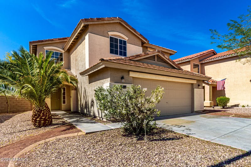 Listing details for 118 223rd Ave, Buckeye, AZ 85326 : Fantastic two-story home in Sundance awaits you! Offering 4 beds + bonus room, 3 baths, 2-car garage, & low-care landscape. The inviting interior features tons of natural light, a neutral palette, and soft carpet & tile flooring t/out. You'll love the desirable open layout, designed for everyday living & entertaining! The eat-in kitchen boasts SS appliances, ample white cabinetry, and a 2-tier peninsula w/breakfast bar. One bedroom & one bathroom downstairs, ideal for the guests. Head upstairs to find the other bedrooms, along with a versatile den & a bonus room for an office! The main bedroom has a full bathroom with dual sinks & a walk-in closet. Outback, you have a covered patio to relax or enjoy BBQ. No direct neighbors behind, as it backs to a common area! Don't miss this opportunity!