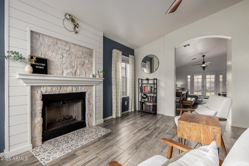 Listing details for 1181 Jupiter Pl, Chandler, AZ 85225 : This move-in ready home has a bright, open layout with vaulted ceilings, gas fireplace, wood wall treatments and plenty of updates. Kitchen remodel with granite counters, stainless appliances, and tile backsplash. Wood plank tile floors throughout and recent interior and exterior paint. Low maintenance front and back yards with synthetic turf and backyard fire pit. Located in The Springs lake community. This desirable Chandler neighborhood near the 202 freeway offers owners access to all amenities of The Springs Swim & Racquet Club including a pool, heated spa, and tennis, pickleball & basketball courts, as well as walking paths, playgrounds & five fishing lakes. Walking distance to... (more) Walking distance to both City of Chandler's Homestead North Park & the Paseo Trail canal walking & biking path without crossing any major streets. Only 1.5 miles from all the latest dining, shopping & entertainment Downtown Chandler has to offer.