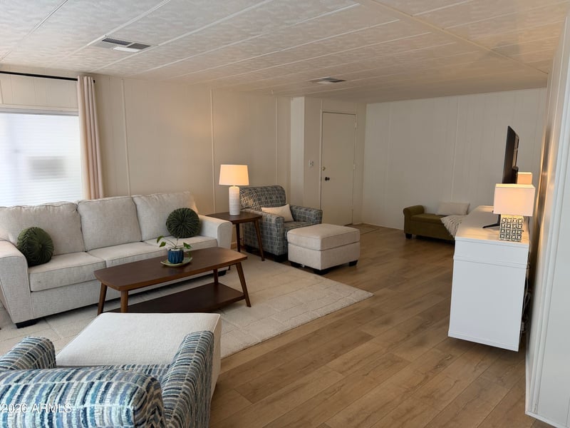 Listing details for 11811 19th Ave #24, Phoenix, AZ 85029 : Fully Updated & Move-In Ready in 55+ Community! This beautifully refreshed home offers new AC (2023), all new plumbing and fixtures, new flooring, and fresh paint throughout. Both tubs and showers have been reglazed, along with the guest bath countertop. The front porch has been refurbished and furnished with all new outdoor furniture, creating a welcoming outdoor space. Inside you'll find brand-new washer and dryer, all new furniture, and a guest bedroom that has never been slept in with Casper mattresses + 3'' memory foam toppers. Additional upgrades include new exterior motion lights, security cameras, bottom-up/top-down cellular shades in the living room, and new blinds and curtains in bedrooms. Truly turn-key and ready to enjoy in this quaint park!