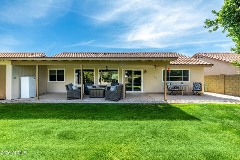 Listing details for 1182 Erie St, Chandler, AZ 85225 : Located near downtown Chandler. OVERSIZED yard with no HOA... the one you've been searching for! Fall in love with the inviting living room showcasing vaulted ceilings, a soothing palette, sliding doors that lead to the backyard for seamless indoor-outdoor living. The gourmet kitchen comes with granite counters, elegant white cabinetry with crown moulding, built-in appliances, and a peninsula with a breakfast bar. The cozy primary bedroom boasts a lavish ensuite with dual sinks, a soaking tub, and a walk-in closet. Spend peaceful moments in the lovely backyard, featuring a covered patio, a storage shed, a fire pit for starlit evenings, and abundant space for hosting unforgettable outdoor gatherings. Don't miss out on this incredible gem! HVAC- 5 YEARS OLD, ROOF 2019. New Windows! Plus