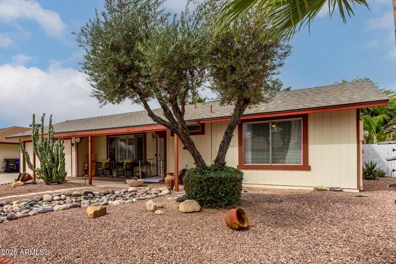 Listing details for 11846 Winnebago St, Phoenix, AZ 85044 : Seize the chance to own this cozy 2-bedroom home in the adult Community of Ahwatukee! You're greeted by a 2-car garage, a low-maintenance desert landscape, and a front patio that sets an inviting tone. Discover a serene living room with a soothing palette, classic plantation shutters, and durable tile flooring for easy maintenance. You'll also find a dedicated family room for relaxing evenings. The well-appointed kitchen comes with granite counters, crisp white cabinetry, a mosaic tile backsplash, essential built-in appliances, and a peninsula for extra prep space. Both bedrooms are well-sized, offering a private retreat for a good night's sleep. Unwind in the backyard, which includes a screened patio and pristine artificial turf for outdoor relaxation. Make it yours today!