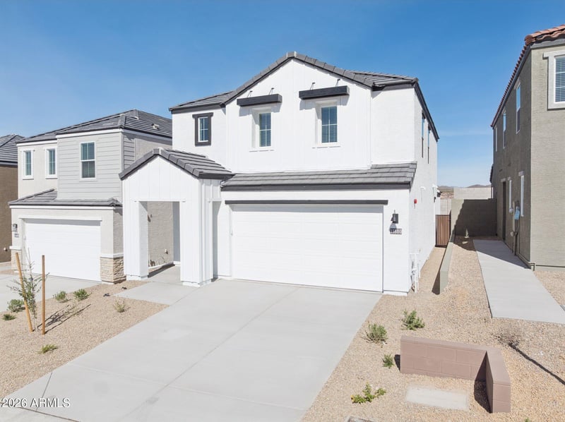 Listing details for 11880 Burnside Trl, Peoria, AZ 85383 : Stunning brand-new 2-story home in the coveted new community The Buttes at Mystic, ideally set near Lone Mountain Pkwy and N El Mirage Rd. This premium corner lot showcases bright white cabinets, sleek quartz countertops, stainless appliances, and elegant wood-look tile flooring that adds warmth and style throughout the main level. Offering 2,047 sq ft with 4 spacious bedrooms and 2.5 baths, this home delivers open-concept living, generous natural light, and modern designer finishes. Surrounded by new parks, scenic walking trails, mountain views, and rapidly growing shops and dining just minutes away, this home blends luxury, convenience, and comfort in one exceptional package.