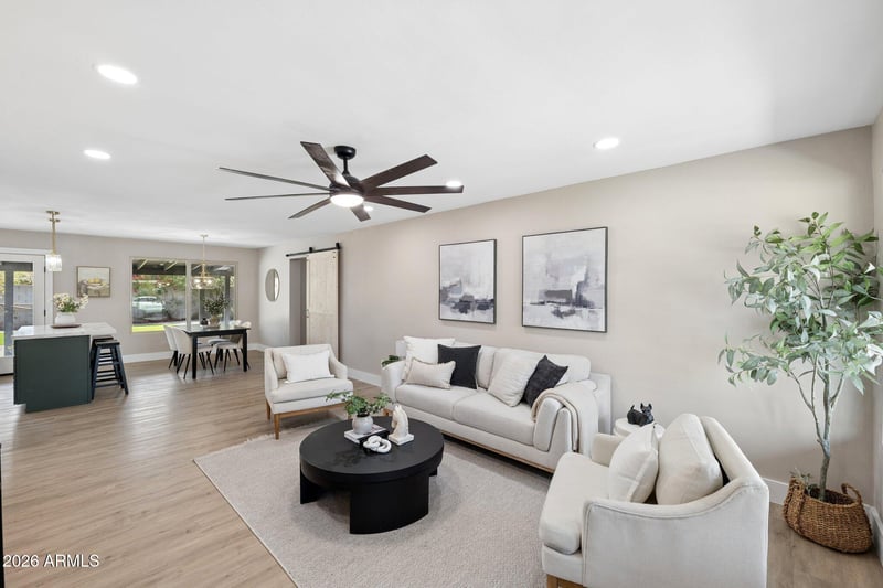 Listing details for 1215 Hazelwood St, Phoenix, AZ 85013 : FULLY REMODELED! Fresh, stylish, and completely move-in ready, this beautiful 3-bedroom, 2-bath home with a garage offers the perfect blend of modern updates and everyday comfort. Designed with an open-concept floor plan, the living, dining, and kitchen spaces flow seamlessly together--ideal for both entertaining and daily living. The brand-new kitchen is a true centerpiece, featuring all-new appliances, countertops, cabinetry, and a clean, contemporary feel. Both bathrooms have been thoughtfully updated with modern finishes, while new flooring and paint throughout the home create a fresh and cohesive interior. Beyond the cosmetic upgrades, this home delivers peace of mind with all-new plumbing and whole home electrical re-wiring, including trenched and fully replaced sewer lines--an improvement you don't often find in this area! Step outside to enjoy fully landscaped front and backyards, offering great curb appeal and inviting, low maintenance outdoor spaces ready for relaxing or hosting. Storage won't be an issue here, either! Between the garage, new shed, and large laundry room (brand new machines included!!) there's plenty of space for everything! With quality renovations from top to bottom and major systems already addressed, this home is truly turnkey and ready for its next owner to enjoy.