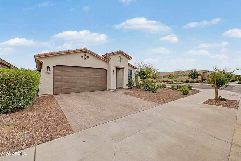 Listing details for 12364 174th Ln, Surprise, AZ 85388 : Welcome to this stunning, nearly new home that shows just like a model! With 9 ft ceilings and 8 ft doors throughout. Built only 2 years ago, this beautifully maintained property offers 3 spacious bedrooms, 2 modern bathrooms, and an inviting open floorplan designed for both comfort and style.