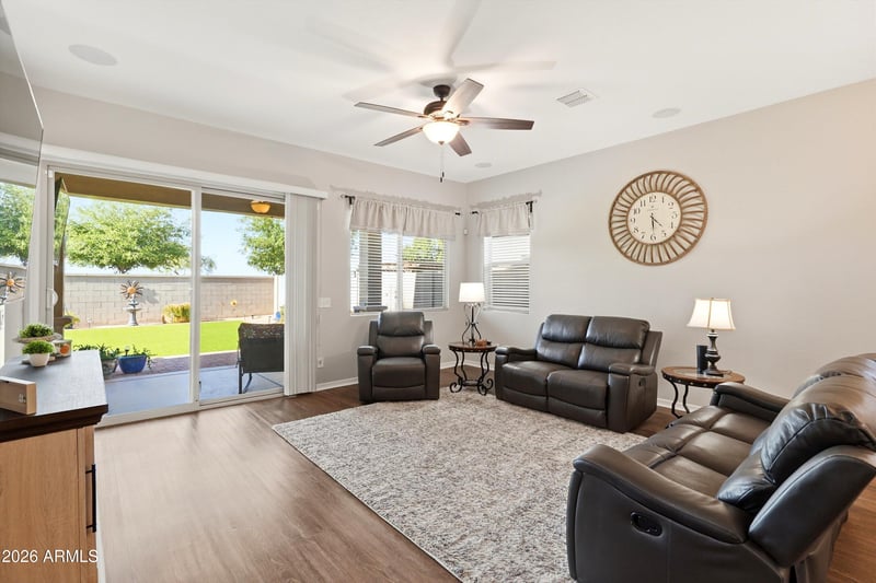Listing details for 1246 Spine Tree Ave, Queen Creek, AZ 85140 : Imagine waking up to park views every morning and ending your day with a sunset over the mountains. This stunning 6-bedroom, 4-bathroom Fulton-built home in Ironwood Crossing offers the perfect blend of luxury and functionality with over 3,300 square feet of living space. The home features a unique main-floor design that feels like three distinct wings, providing quiet corners and unmatched privacy for everyone. The interior is anchored by a sprawling kitchen featuring a huge island, premium granite counters, maple cabinetry, and gas cooking. The primary suite and three guest rooms are conveniently located downstairs, while the second story provides a massive loft alongside two more bedrooms and a full bath.